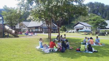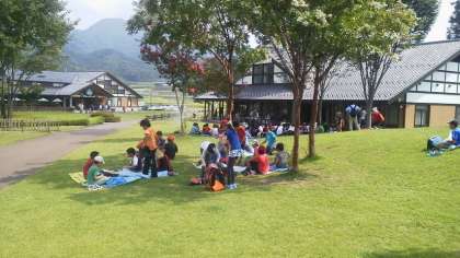 田園プラザでは、お弁当を食べました。食べ終わった後、希望者20数人は後山に登りました。展望台からは川場村が一望できました。