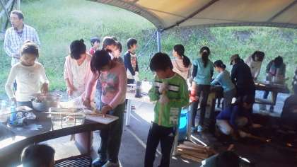 14:35から飯盒炊さんを行いました。班によって、ご飯もカレーもいろいろでしたが、無事おいしく食べられました。