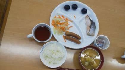 朝食の様子です。昨夜の寝具合で、食欲に差があるようです。これから21世紀の森ハイキングです。