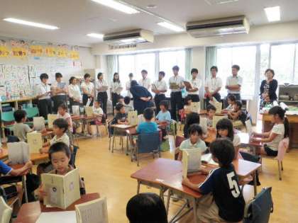 今日は、初任者教員27人に対して、教科「日本語」の授業を見せました。単元は宮澤賢治の「雨にもまけず」でした。子どもたちは、教師と交互に、男女交互に、グループごとに何回も何回も朗誦し、授業の終わりには、暗誦できるようになった子もたくさんいました。これからも教科「日本語」を通して、日本語の響きやリズムを楽しんでもらいます。