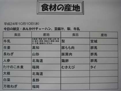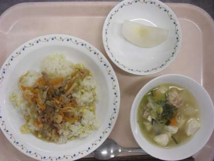 <あんかけチャーハン・豆腐汁・梨・牛乳>