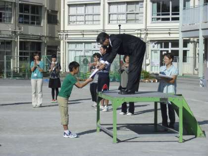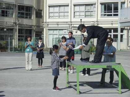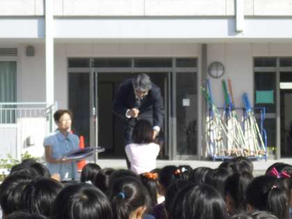 その後、子ども読書リーダーとして活動している児童の紹介と、先だっての合唱団のTBSコンクールの表彰、ミニバスでがんばって3位になった児童の表彰をしました。