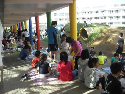 今日は、たてわり給食でした。天気にも恵まれ、校庭の日陰で班ごとにお弁当を食べました。残菜も少なくよく食べてくれました。