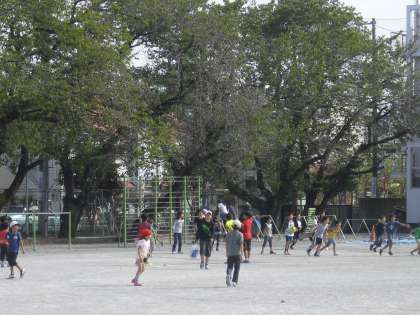 その後、お弁当の容器を片づけて、ロング昼休みを活用して、たてわり班で遊びました。久しぶりの晴天のもと、暑い中でしたが、のびのびと外で過ごしました。