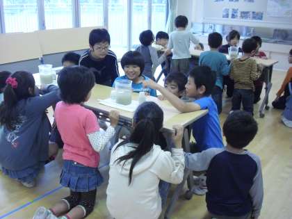 水源林から家庭に水が届く様子をビデオで見たり、水を浄化する実験等を行いました。