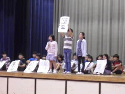 児童集会(10月18日)委員会の委員長・副委員長紹介