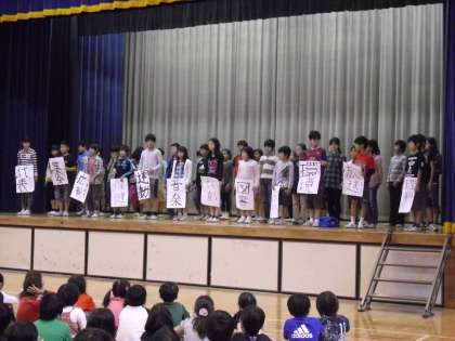児童会の後期委員会の委員長と副委員長の自己紹介を行いました。