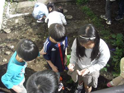 20分休みに、保護者のボランティアの方が見守る中、ビオトープを1・3・5年の子どもたちに開放しました。