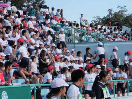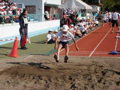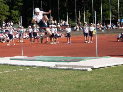 写真は、男子走り幅跳び、男子走り高跳び、応援の様子です。