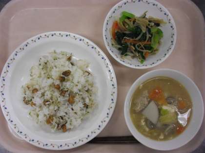 <大豆とじゃこのごはん・おひたし・みそ汁・牛乳>