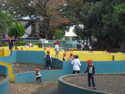 青空のもと、「あきさがし」をした後は、迷路やすべり台で少し遊んで、帰校しました。