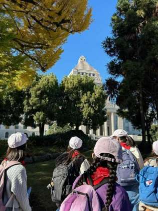 国会議事堂を見学しました。臨時国会が開かれる関係で見学時間の制限があり、見学者で混み合っていましたが、本校はスムーズに見学することができました。その後衆議院議員会館に向かいました。