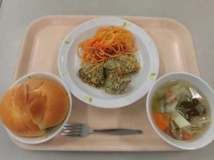 今日の主菜『魚のハーブ焼き』は、魚の漬け込みにバジルやオレガノなどのハーブを使用した料理で、焼き上がりはとてもいい香りがします。