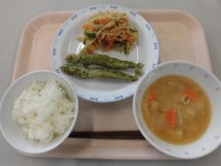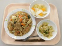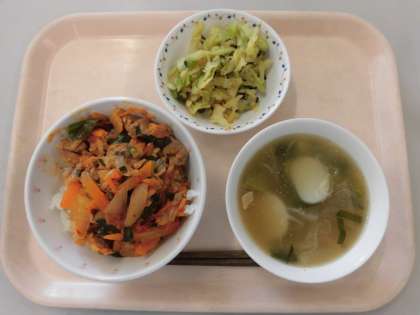 先週の金曜日から全国学校給食週間ということで歴代の給食を紹介してきましたが、今日は最後に現在の給食にしました。現在では食べものも豊富にあり、世界の料理も給食で味わえるようになりました。そこで今日は韓国の食材(キムチやトック)を使用した献立にしてみました。