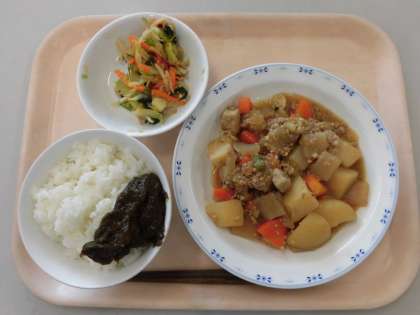 『のりの佃煮』も一から手作りしています。乾燥した干しのりを水に浸し戻し、調味料を加えてゆっくりと煮詰めて作りました。のりには、歯や骨を丈夫にする栄養や、不足しがちなビタミン、ミネラル、食物繊維などたっぷりと含まれています。ご飯と一緒に栄養がとれるようにしました。