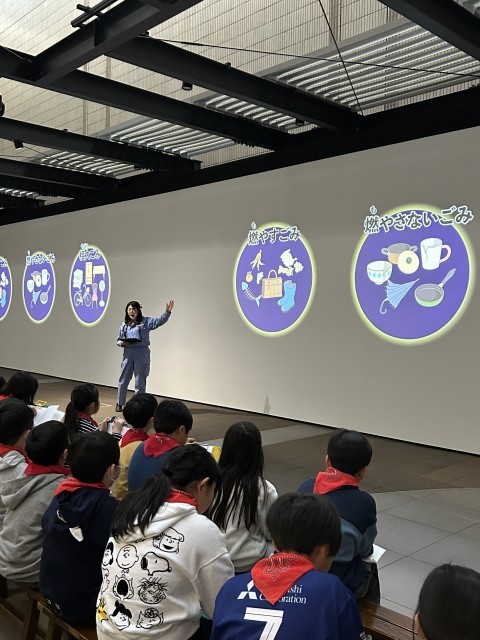 まずはじめに学習室でゴミの処分の方法などを学んでいます。