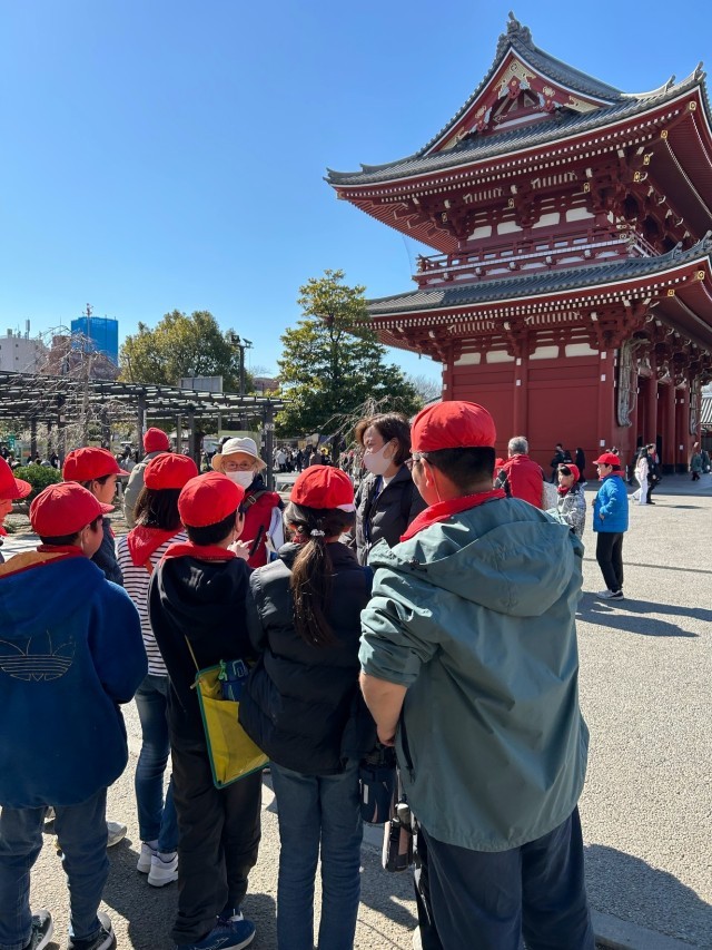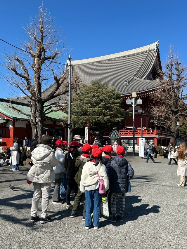 浅草寺に着きました。グループに分かれてガイドさんに案内をしてもらいます。
