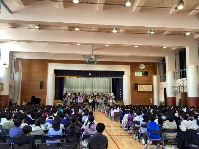 リズムを全身で感じながらの元気な歌声でした。未来に向かってチャレンジする2年生らしさの発揮です。
