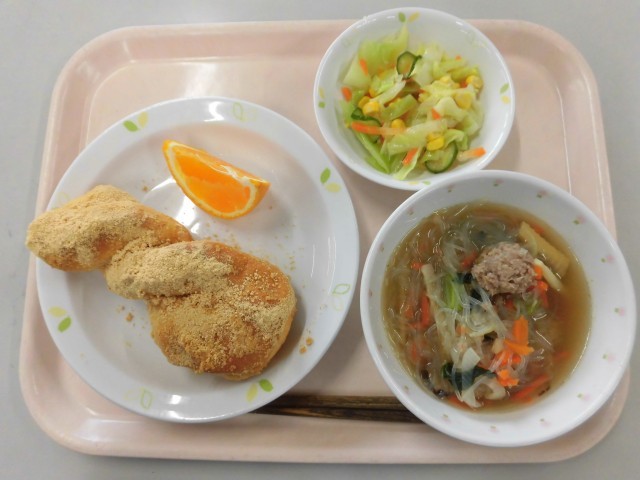 『あげパン』はきなこをたっぷりまぶし、『春雨スープ』には、手作りの肉団子を加えてボリュー