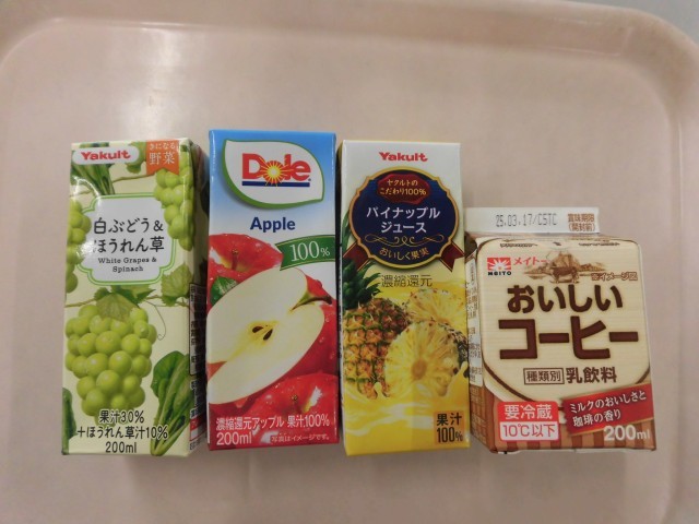 今日はお楽しみのセレクト飲みもの給食でした。4種類の飲みものから、好きなものを各自