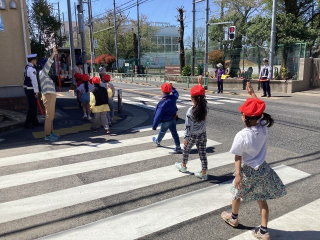 実際に、学校の周りを歩き、交通ルールを確認しました。1年間楽しく安全に学校に通えるよう、しっかり学習しました。