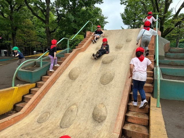 元気いっぱいたくさん遊んだあと、学校に帰りお弁当を食べました。