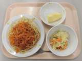 ★今日の献立★ 牛乳 スパゲティピザ風ソース ツナサラダ くだもの(りん...