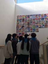 小グループに分かれ、ボランティアの解説委員の方の案内で館内の鑑賞をしています。