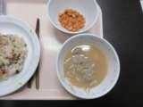 【献立】・菜飯・ジャンボ餃子・マスタードドレッシングサラダ・コーンスープ・牛乳