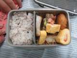【献立】・ごはん(有機米・あきたこまち)・魚の揚げ煮・野菜の辛し和え・味噌汁・牛...