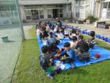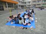 1年生が3クラス合同でお祭り(あきまつり)をしています。