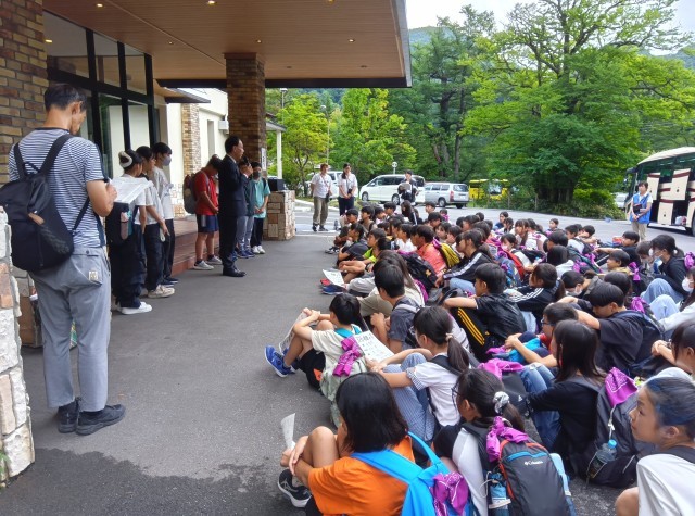 入館式が終わり、部屋でゆっくり過ごしました。みんな元気です。