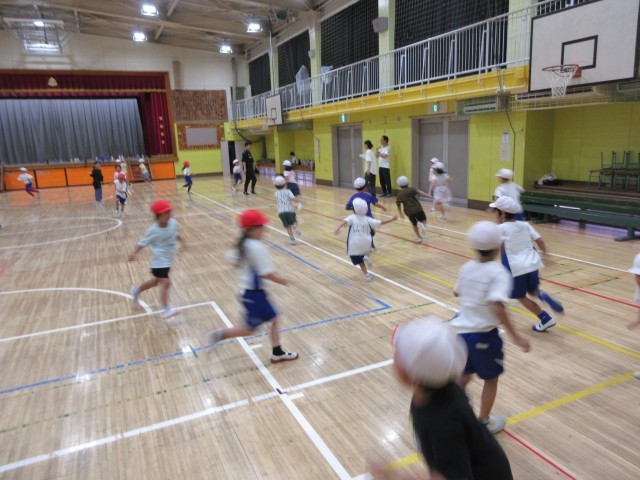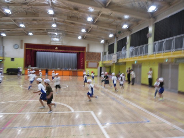 体育委員会の企画で1年生が体育館で鬼遊びをしました。