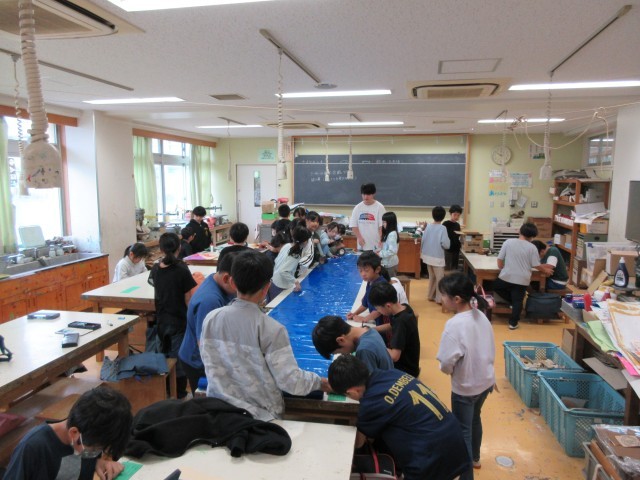 今週末はいよいよ運動会です。それが終わると「展覧会」に向けて本格的に行事への取り組みがシフトします。共同作品の製作に取り掛かっている様子です。