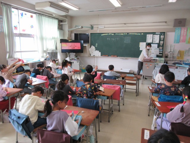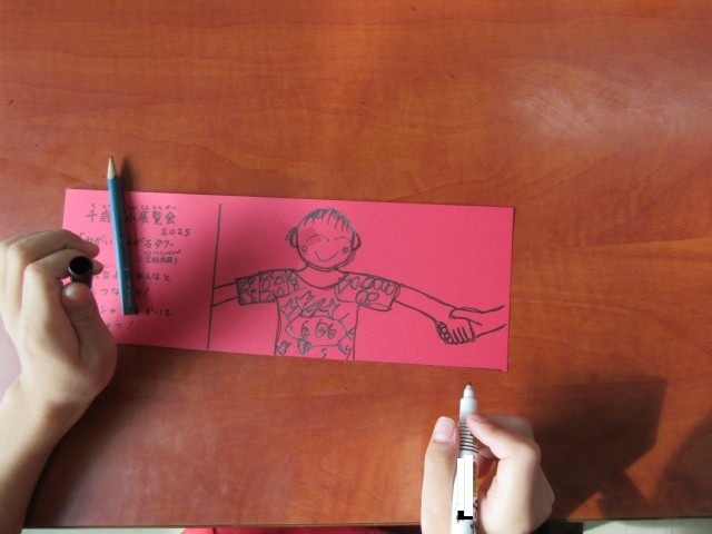 初めての展覧会に向けて準備を進めています。全校共同作品の絵を描いています。自分たちの描いた絵がどのように飾られていくのか楽しみです。