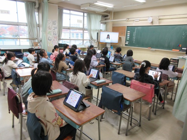 今日の集会は感染症予防のため、オンラインで実施しました。教室で、各自の学習用端末を使ってビンゴゲームをしました。