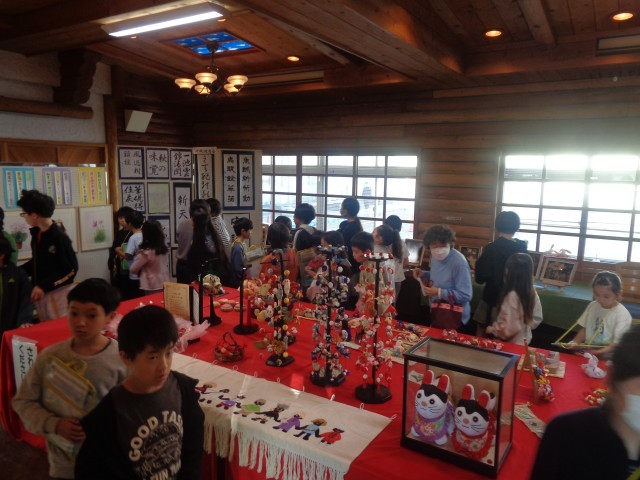 地域の皆さまの作品です。千歳廻寿会、千歳台女性会の方々から出品いただきました。素敵な作品ばかりです。子どもたちも楽しませていただきました。