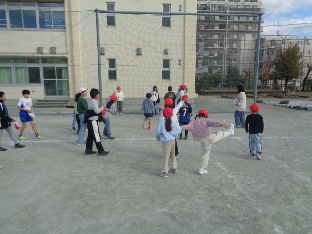6年生のリーダシップで、楽しく遊んでいます。みんな一生懸命、6年生も一生懸命!
