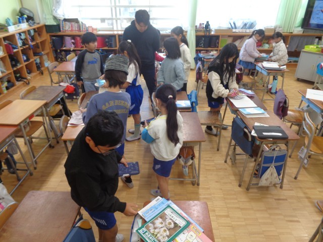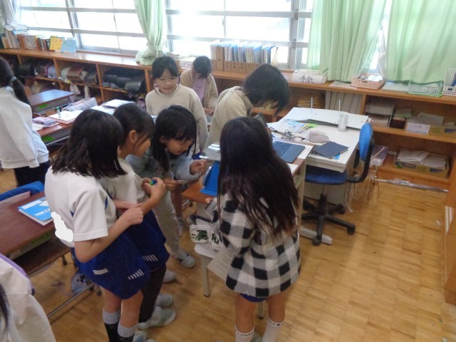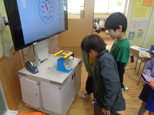 めもりの読み方を学習して、色々な物の重さを量ったり、300gぴったりになるように筆箱などの小物をまとめて量ったりしました。「やったー!」の声が響いていました。