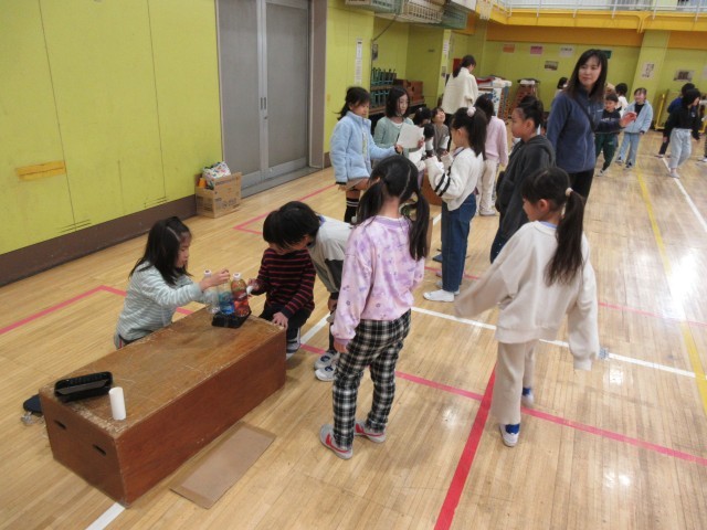 2年生がお店を開き、1年生が遊びに来ました。以前、2年生だけで実施した時よりお客さんが多く、みんな張り切っていました。素敵ない学年交流でした。
