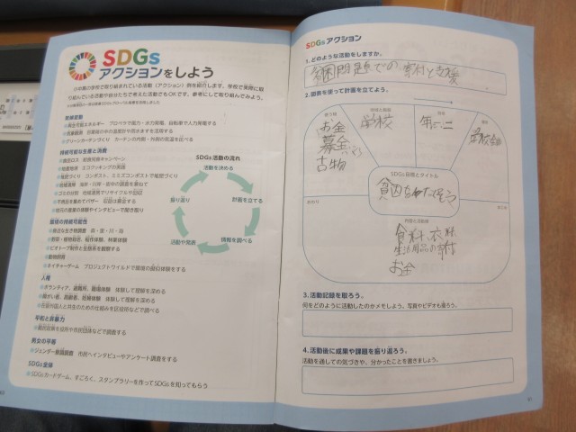 総合的な学習の時間で「SDGs」について学習をしています。実際に校外に出てごみ拾いをする声掛けをしたり、募金活動に出発したりして充実した活動をしています。