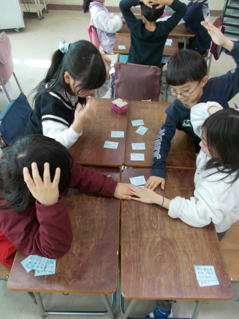 2年生も百人一首です。普段は馴染みのない言葉も出てきますが、集中して聞いて、みんな楽しんでいました。