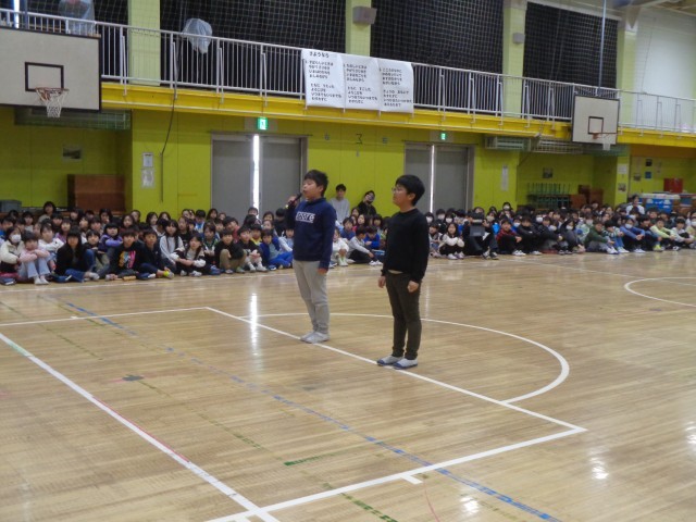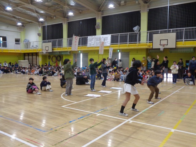代表委員の司会進行で会が始まりました。6年生は楽しそうにクイズに参加していました。