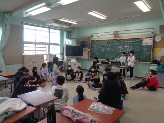 5年生が中心になり、たてわりグループごとに感謝の会が実施されました。グループごとに考えた遊びを楽しそうに取り組んでいました。6年生と過ごせる時間もあと少しですね。