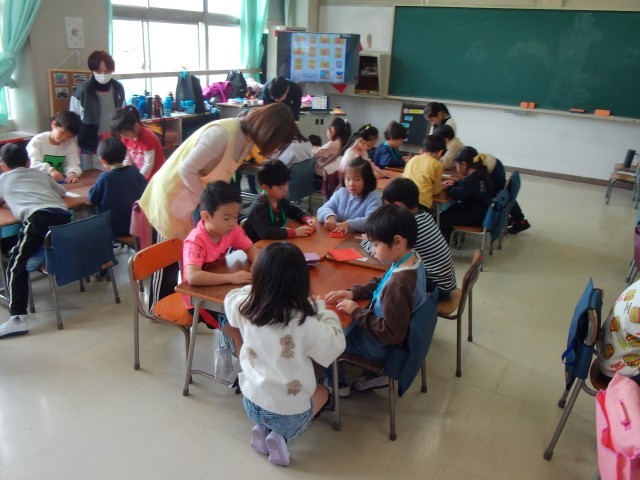 1年生が来年度に入学する園児を招き、交流をしました。園児に優しく関わる姿は、頼りになるお兄さんお姉さんでした。しっかり、成長しています。