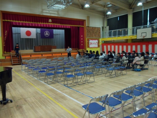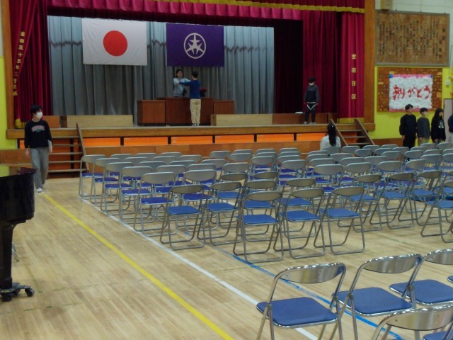 6年生が証書授与の練習をしています。歩く道順や受け取り方、舞台上での一言など、念入りに練習していました。