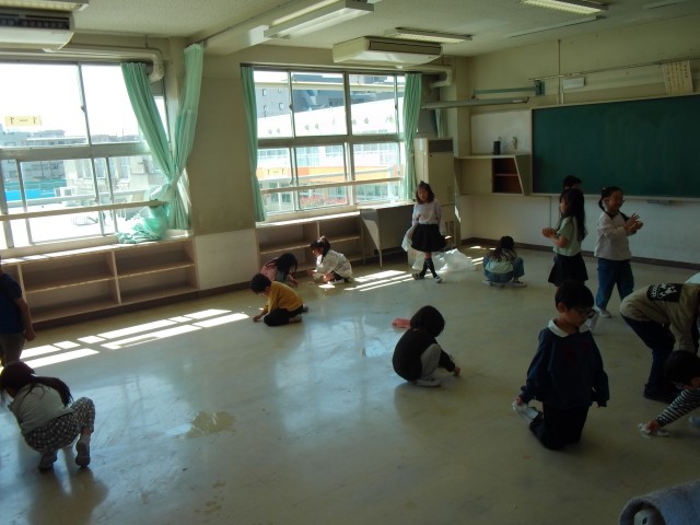 みんなで協力して大掃除をしています。細かいところまで一生懸命きれいにしています。1年生もすっかり掃除が上手になりました。