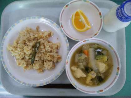 千歳台小学校自慢の和食、「だし」の利いたすいとんを献立に入れました。