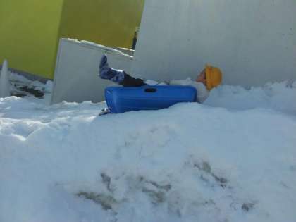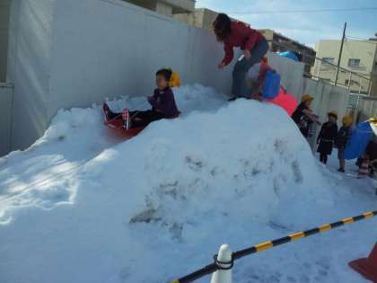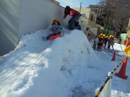 デバンデスのお父さまがたのご協力で千歳台小に雪のすべりだいが登場!