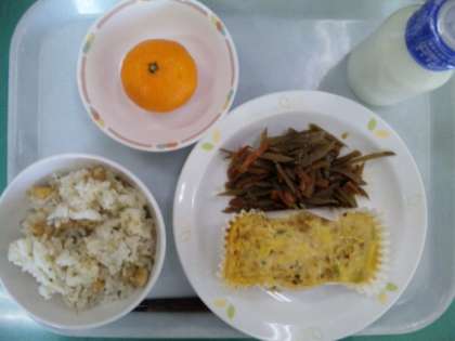 切り干し大根を卵焼きの中に入れました。金平牛蒡は、牛蒡35キロを全て手切りで作ったこだわりの一品です。